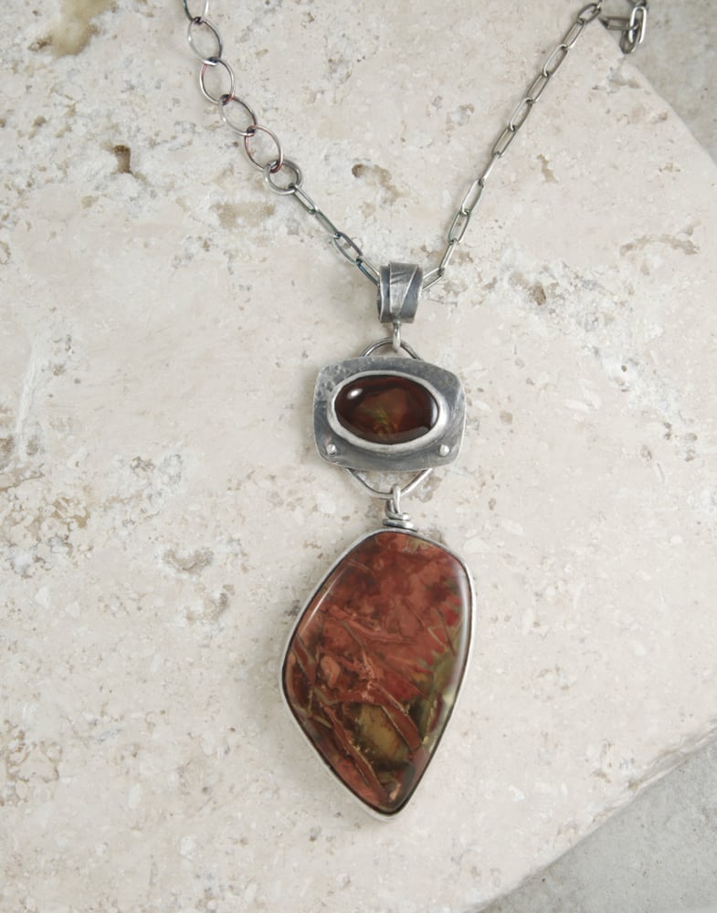 Willow Creek Jasper with Rose Cut Prehnite Necklace