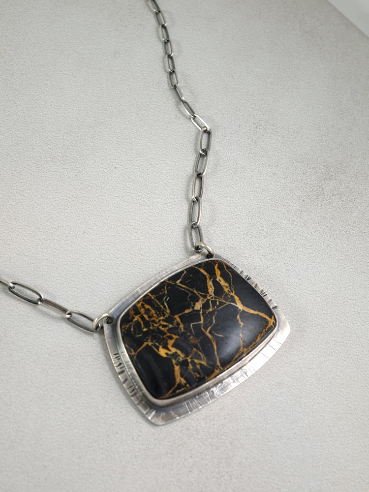 Peanut Obsidian and Handmade Sterling Silver Chain